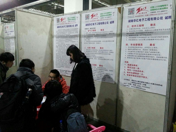 2015年3月12日湖南華億電子工程有限公司副經理陳鋼等參加長沙市紅星人才市場大型招聘會,希望能引進新的人才幫助公司更好的發(fā)展,同時也提供了一個良好的平臺讓精英們向社會展示自己的工作能力。本次需要招聘軟件工程師和市場營銷人員,已有10人愿意來公司工作。