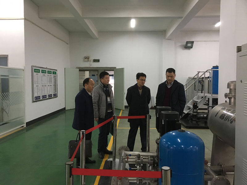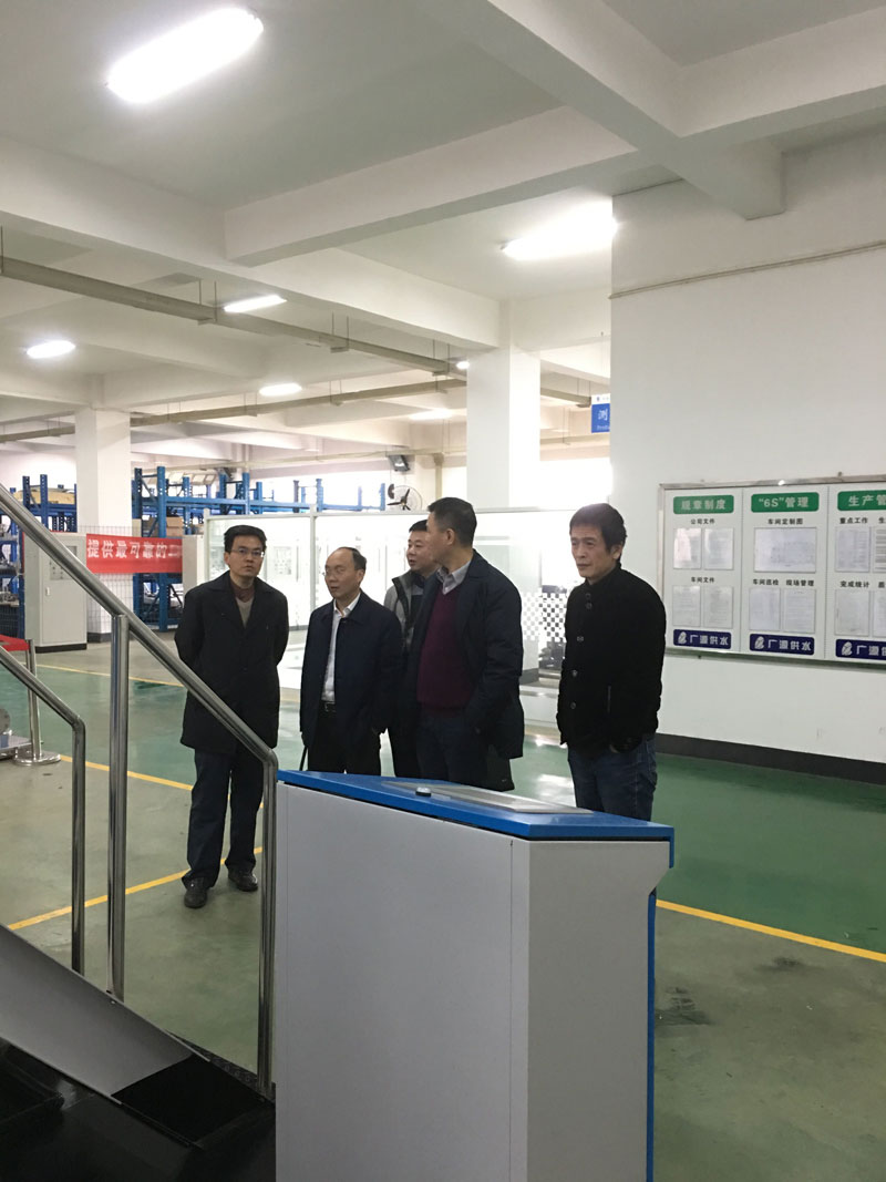 圖為株洲市自來水有限責任公司董事長謝錦輝、總會計師劉國宜親臨設(shè)備生產(chǎn)車間視察工作